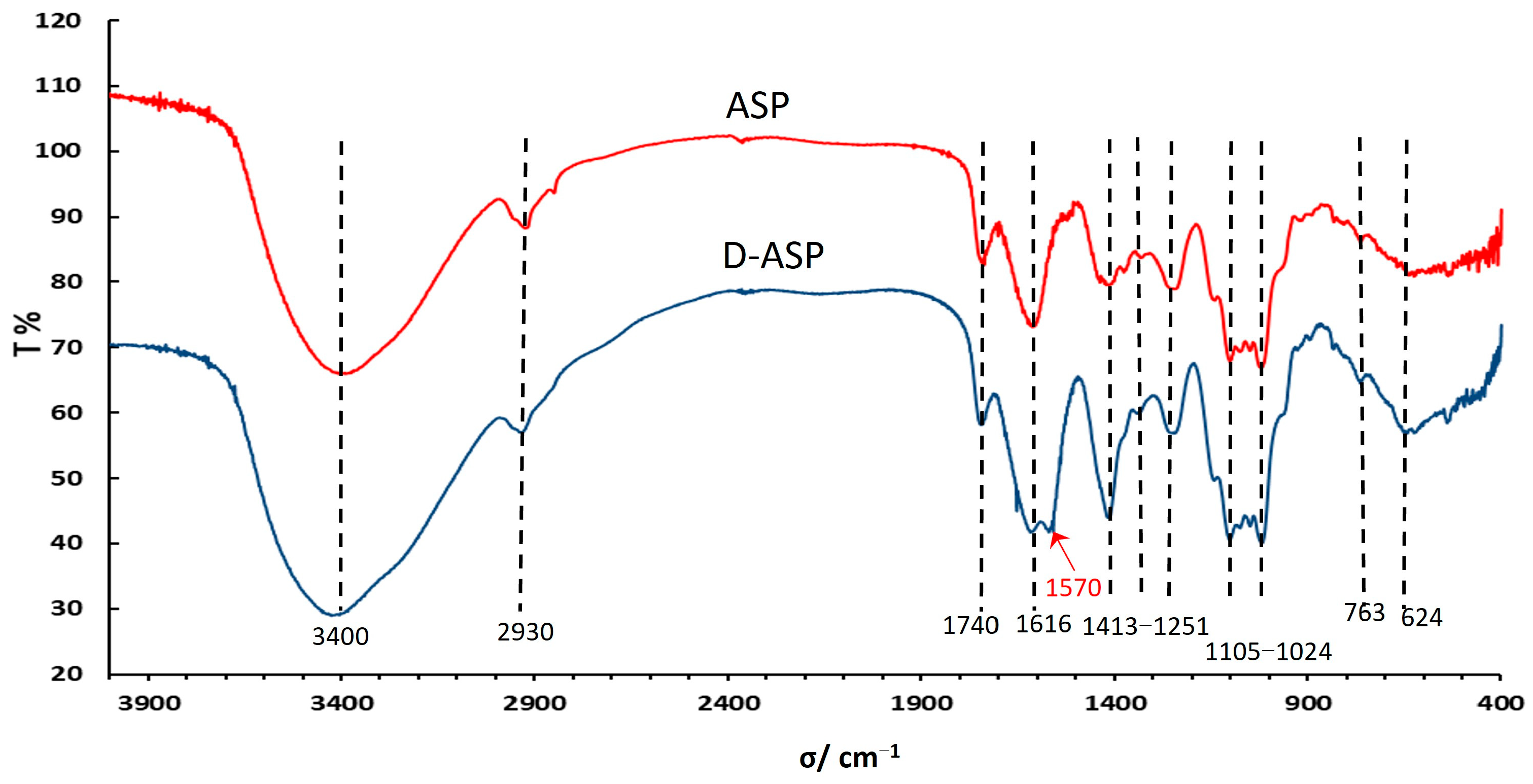 4.13. Antioxidant Activity of the ASP Polysaccharide and the Digestion Product D-ASP
