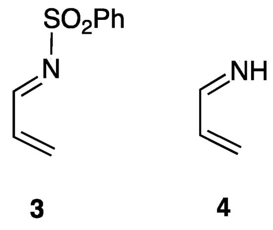 N-(phenylsulfonyl)-1-aza-1,3-butadiene (3) and 1-aza-1,3-butadiene (4).