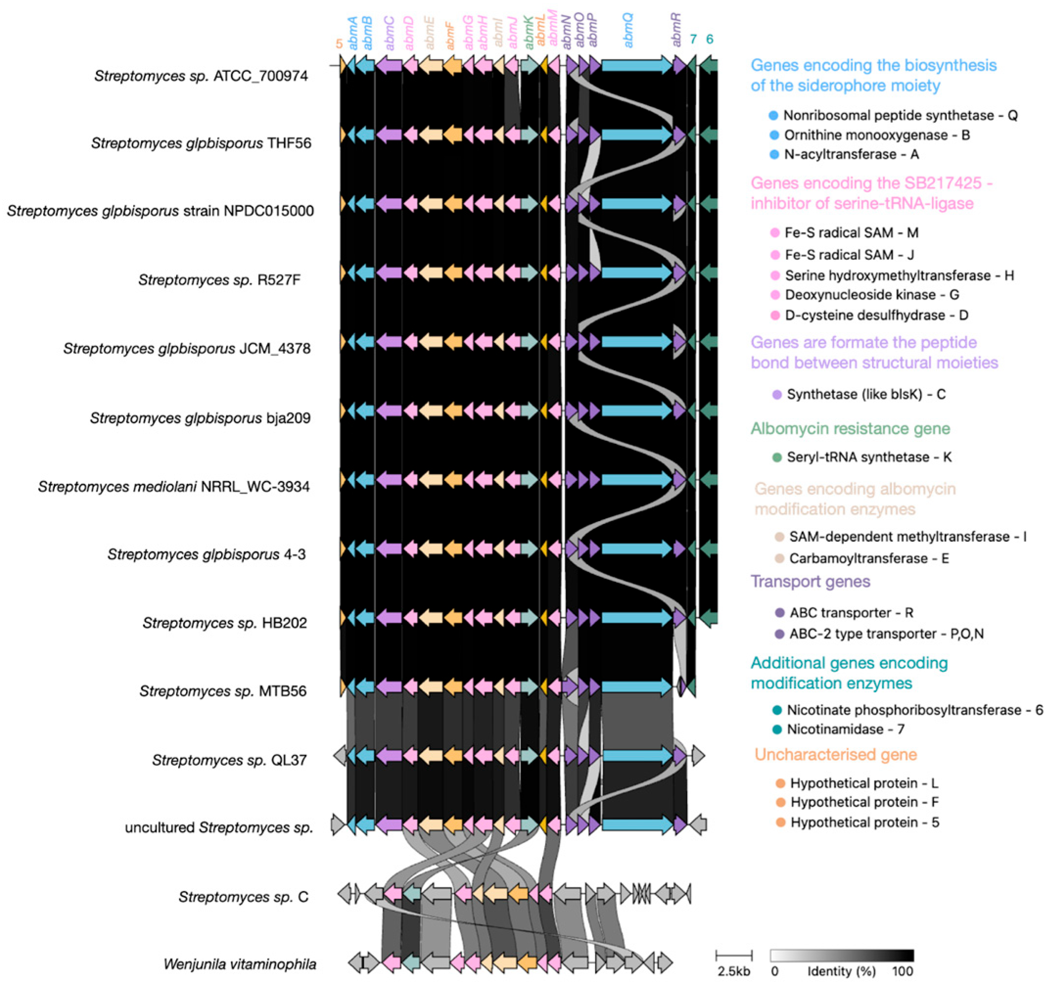 Alignment of all available albomycin δ2 BGCs (