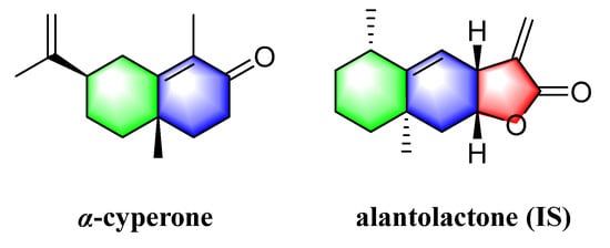 Both LC-grade methanol and acetonitrile were bought from Fisher Scientific (Waltham, MA, USA). LC-MS-grade formic acid was obtained from Anaqua Chemicals Supply (Wilmington, DE, USA). Ethyl acetate was provided by Concord Technology Co., Ltd. (Tianjin, China). The ultra-pure water was produced from a Milli-Q water purification system (Billerica, MA, USA). The reference substances of α-cyperone (CAS 473-08-5) and alantolactone (CAS 546-43-0) were purchased from Chengdu Desite Bio-Technology Co., Ltd. (Chengdu, Sichuan, China).