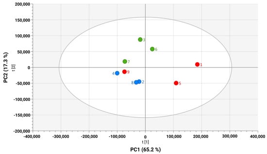 The main metabolites contributing to group discrimination in each model were integrated using Amix 3.9.7. The normality of the distribution of variables was assessed using Student’s t-test. A p-value < 0.05 (95% confidence level) was considered statistically significant.