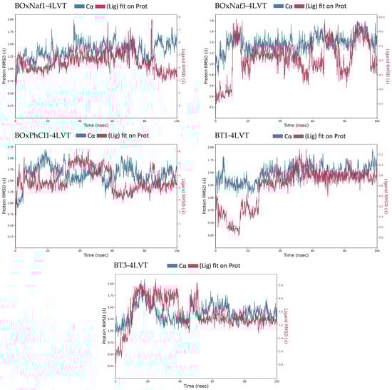| 5 | BOxPhCl8 | −8.56 | BOxNaf2 | −10.7 | BOxPh6 | −7.89 | BOxNaf1 | −10.6 | BTzNaf7 | −7.35 | S63845 | −8.8 |