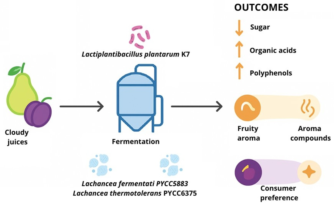 Satora P, Skotniczny M, Maziarek M. Characteristics of Novel Fermented Cloudy Fruit Juices Produced Using Lactiplantibacillus plantarum and Lactic Acid-Producing Lachancea spp. Yeasts. Molecules. 2025; 30(19):3928. https://doi.org/10.3390/molecules30193928