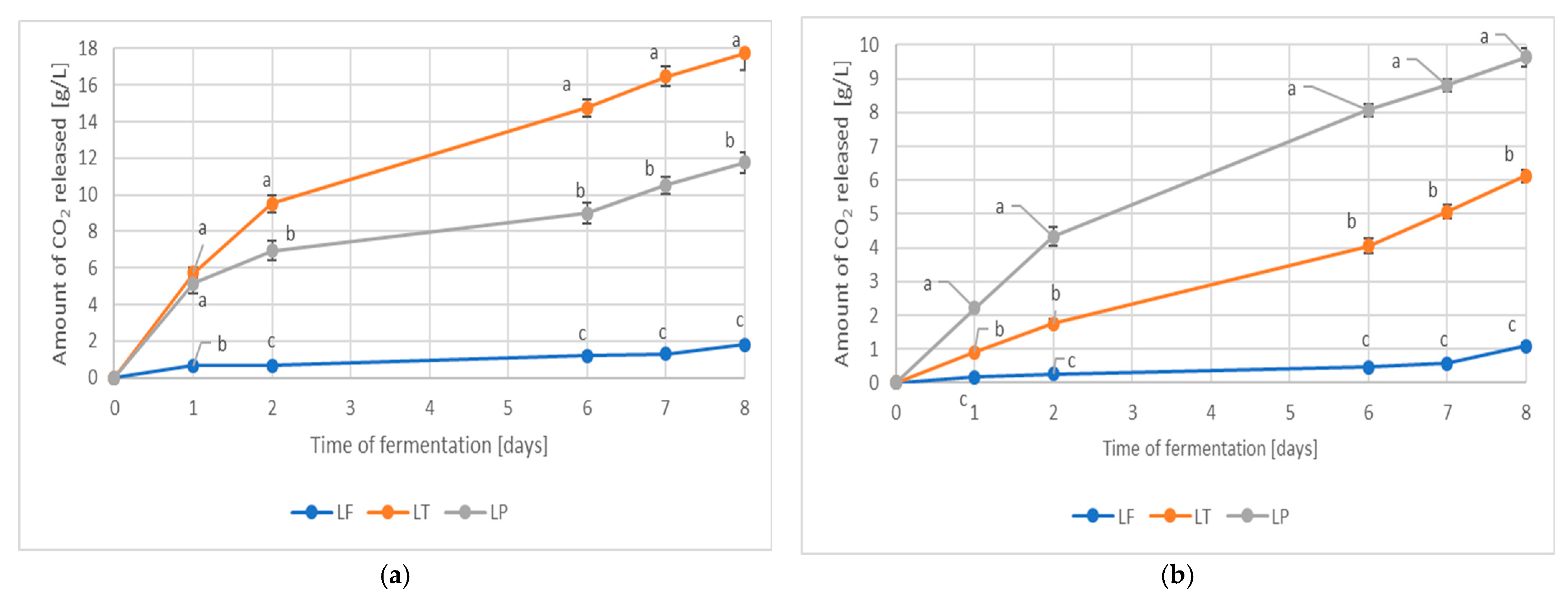 2.1. Fermentation Kinetics and Basic Physicochemical Parameters