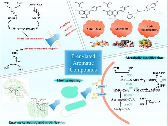 APA StyleTang, M., Zhang, W., Tian, Y., Qiao, J., Li, X., Li, W., & Caiyin, Q. (2025). A Review of the Progress in the Microbial Biosynthesis of Prenylated Aromatic Compounds. Molecules, 30(19), 3931. https://doi.org/10.3390/molecules30193931