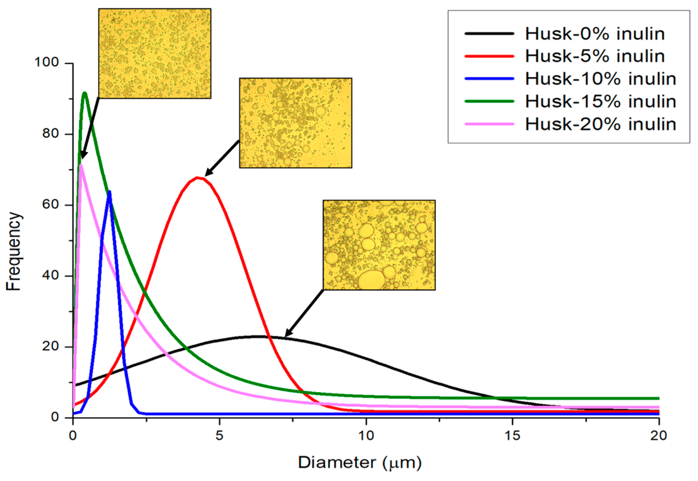 3.4. Polarized Light Microscopic Observation of Emulsion Droplets and Size Measurement
