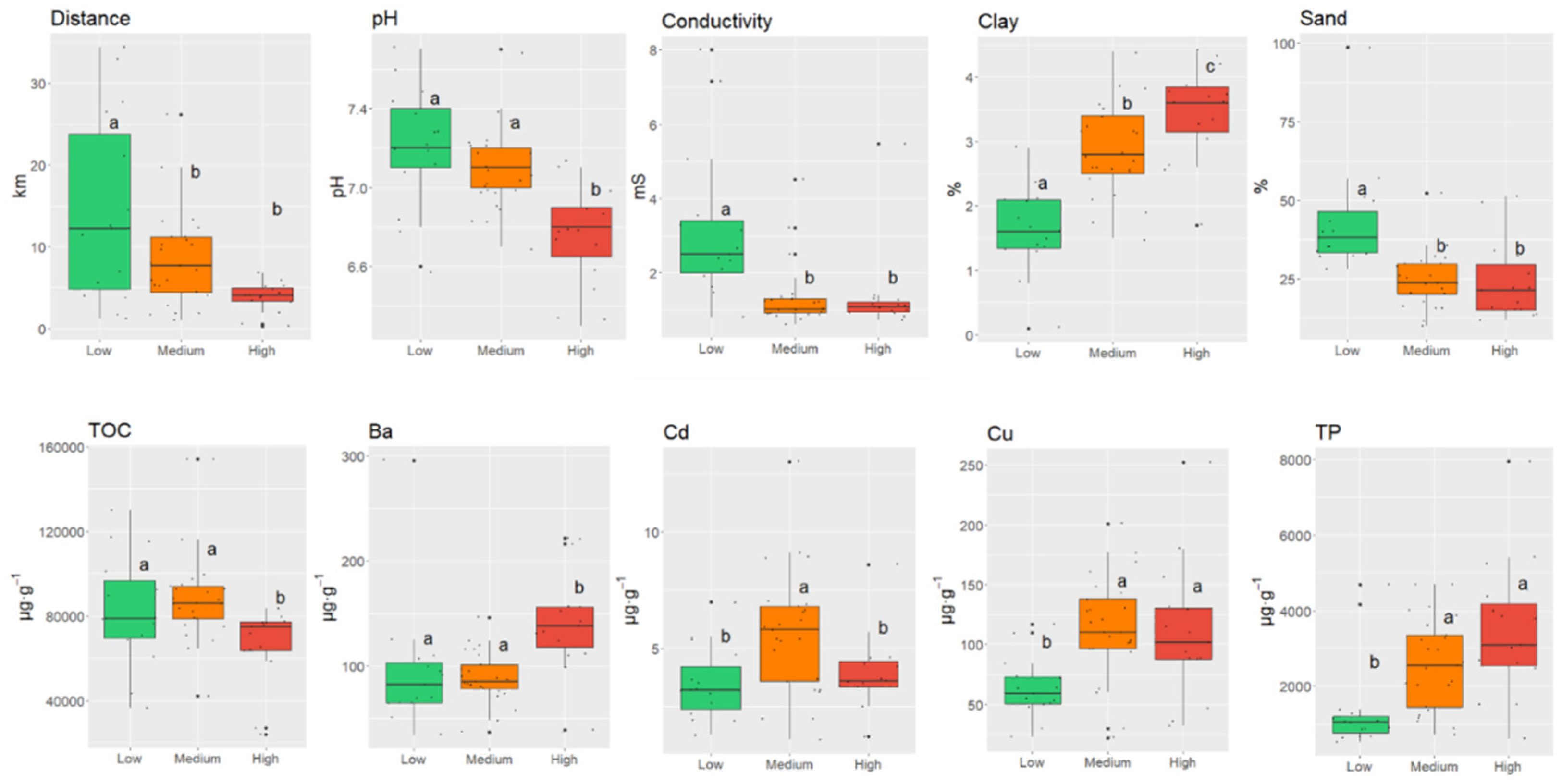 - Le Gaudu, M.; Thiebault, T.; Quénéa, K.; Alliot, F.; Guigon, E.; Le Callonnec, L. Trace organic contaminants within solid matrices along an anthropized watercourse: Organo-mineral controls on their spatial distribution. Sci. Total. Environ. 2022, 822, 153601. [Google Scholar] [CrossRef]