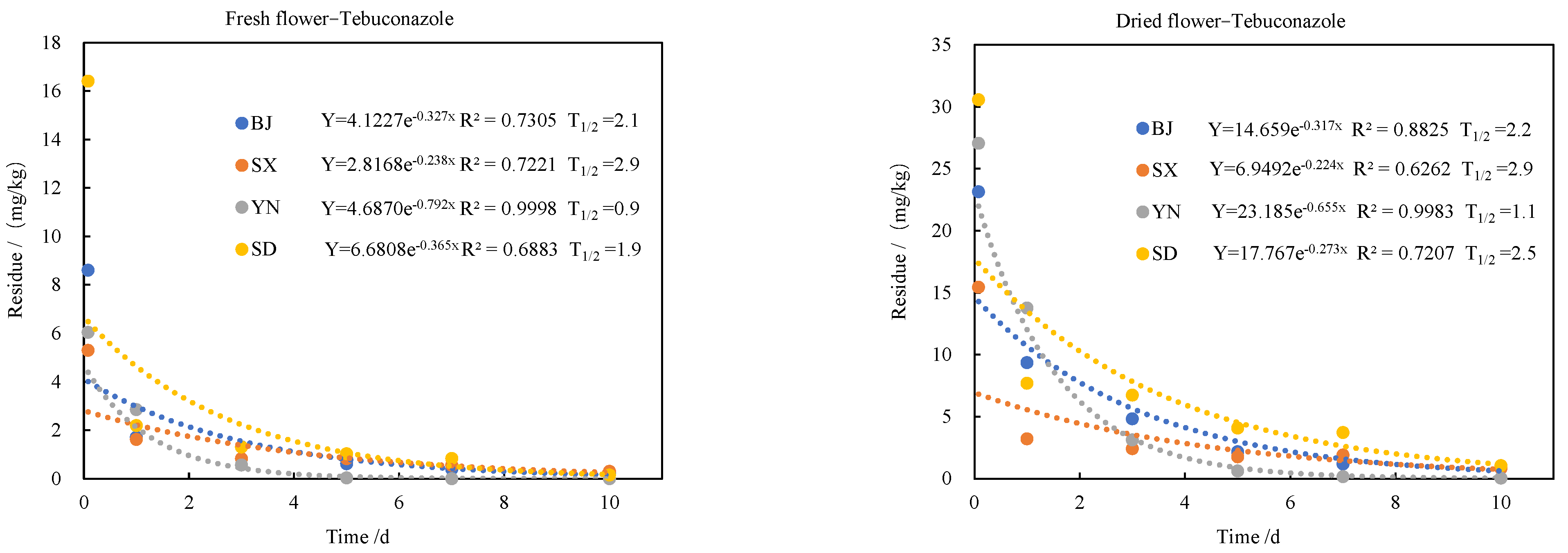 APA StyleQin, X., Zhang, J., Tao, Y., Chen, L., Yu, P., Jing, J., Zhao, E., Zheng, Y., & He, M. (2025). Fate of Tebuconazole and Trifloxystrobin in Edible Rose Petals: Storage Stability and Human Health Risk Assessment. Molecules, 30(19), 3938. https://doi.org/10.3390/molecules30193938