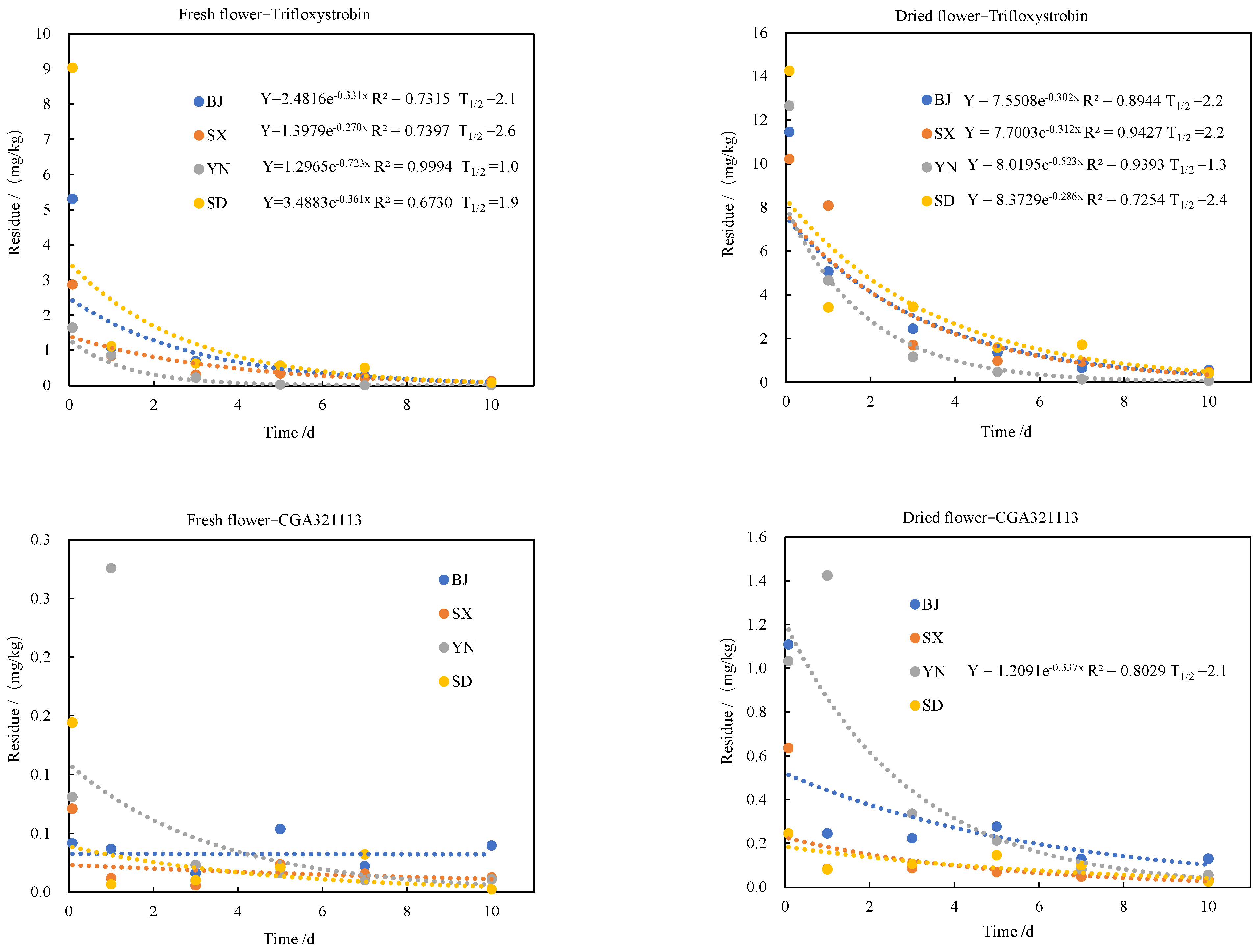 2.2. Dissipation Dynamics of the Fungicides