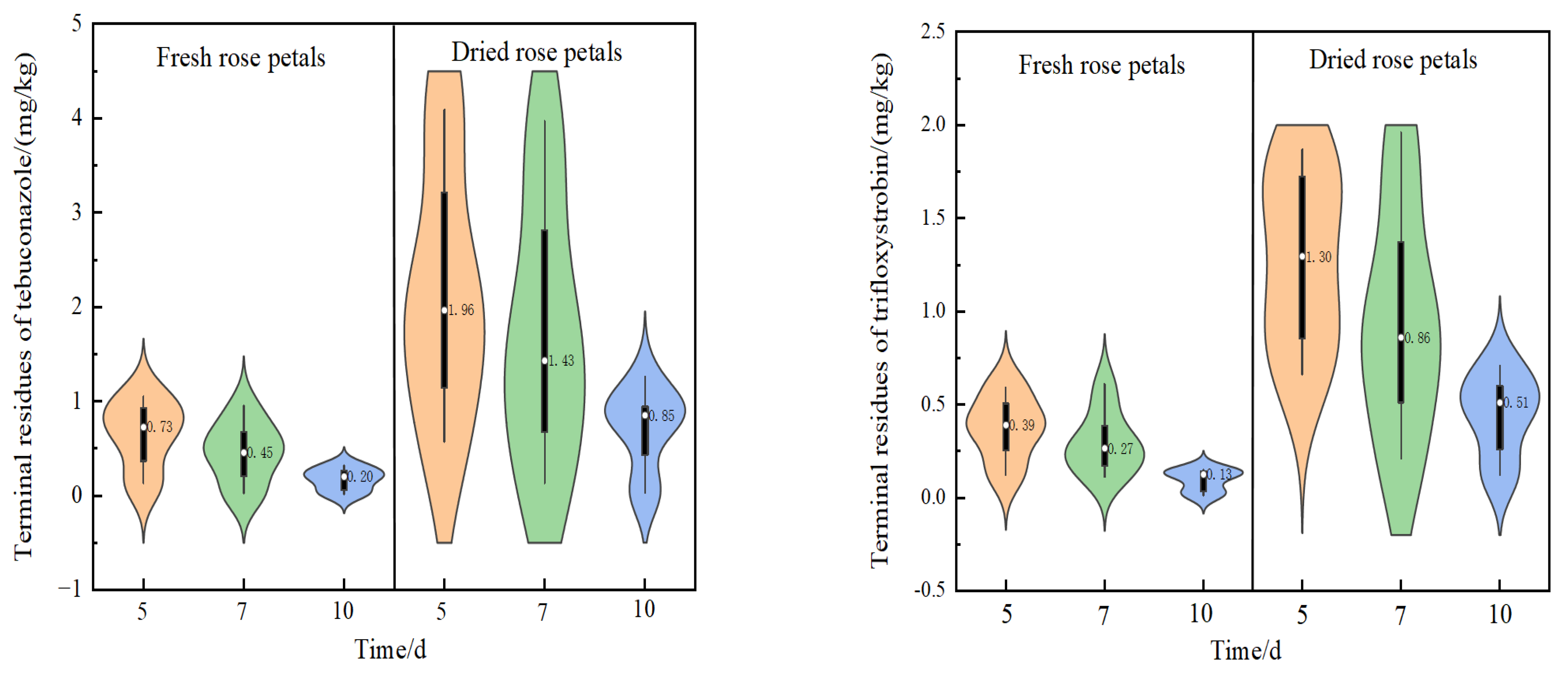 Qin X, Zhang J, Tao Y, Chen L, Yu P, Jing J, Zhao E, Zheng Y, He M. Fate of Tebuconazole and Trifloxystrobin in Edible Rose Petals: Storage Stability and Human Health Risk Assessment. Molecules. 2025; 30(19):3938. https://doi.org/10.3390/molecules30193938