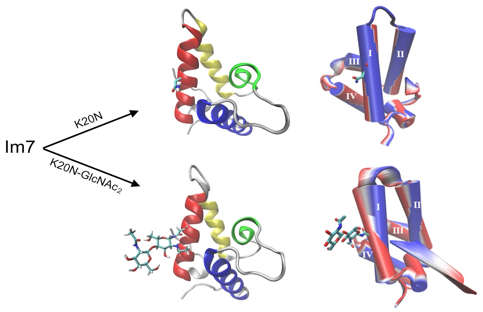 Chicago/Turabian StyleWang, Jianqiang, Panpan Wang, Guojie Cheng, and Dawei Zhang. 2025. "Theoretical Study of the Influence of K20N Glycosylation on the Dynamic Behavior of Im7 Protein" Molecules 30, no. 19: 3939. https://doi.org/10.3390/molecules30193939