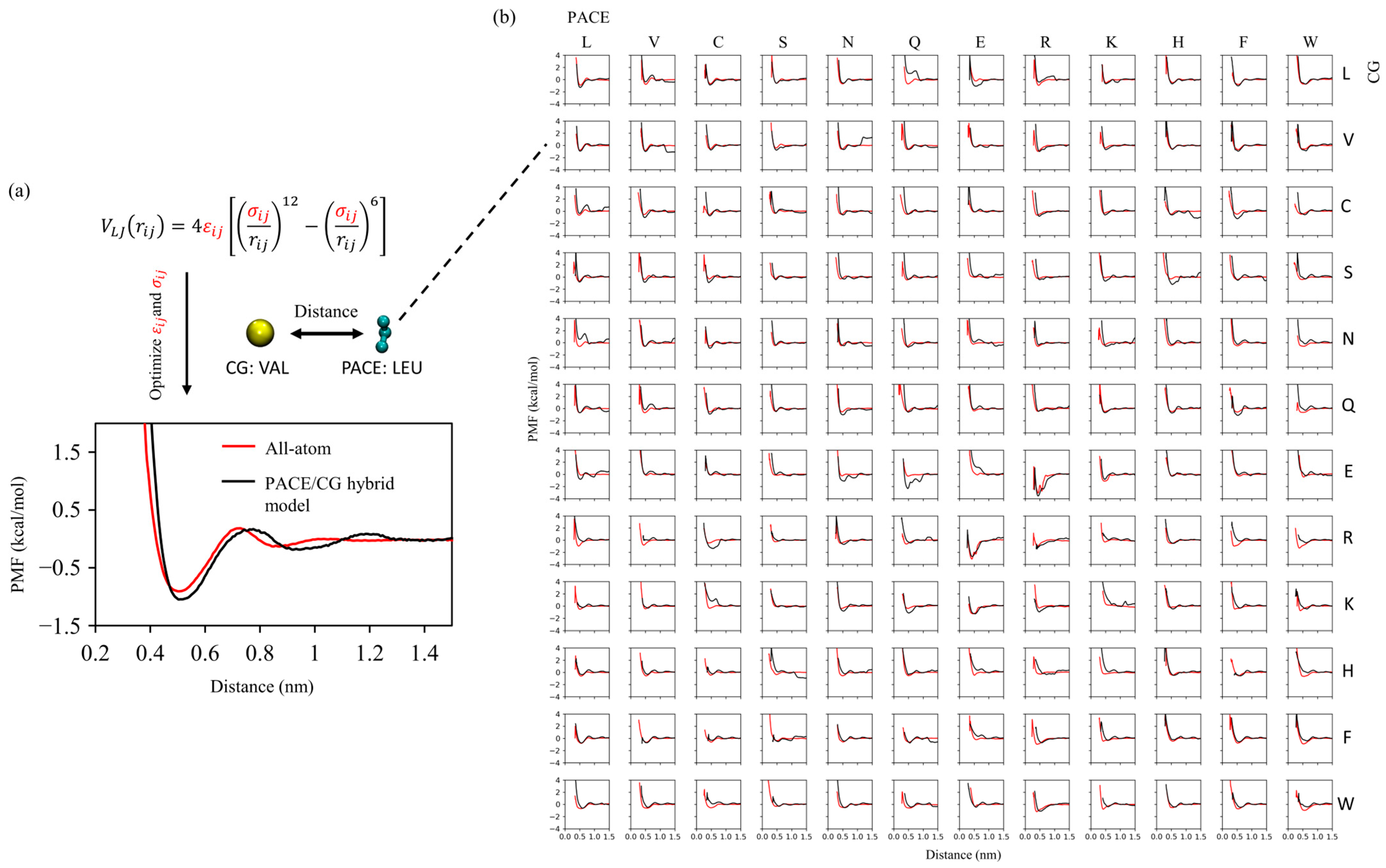 - Cai, X.; Han, W. Development of a Hybrid-Resolution Force Field for Peptide Self-Assembly Simulations: Optimizing Peptide–Peptide and Peptide–Solvent Interactions. J. Chem. Inf. Model. 2022, 62, 2744–2760. [Google Scholar] [CrossRef] [PubMed]