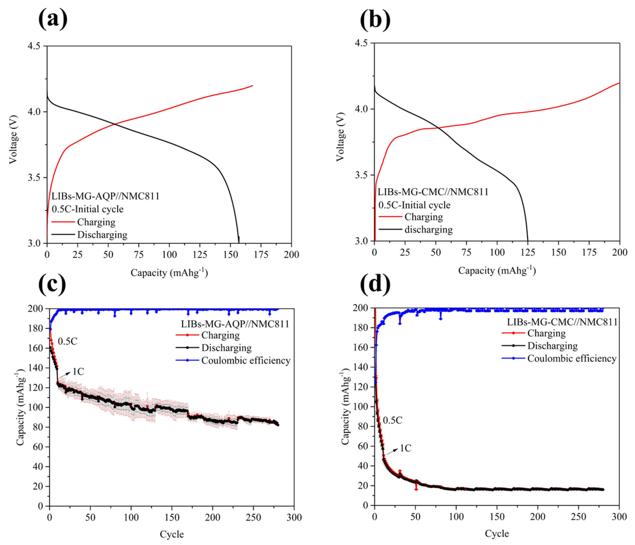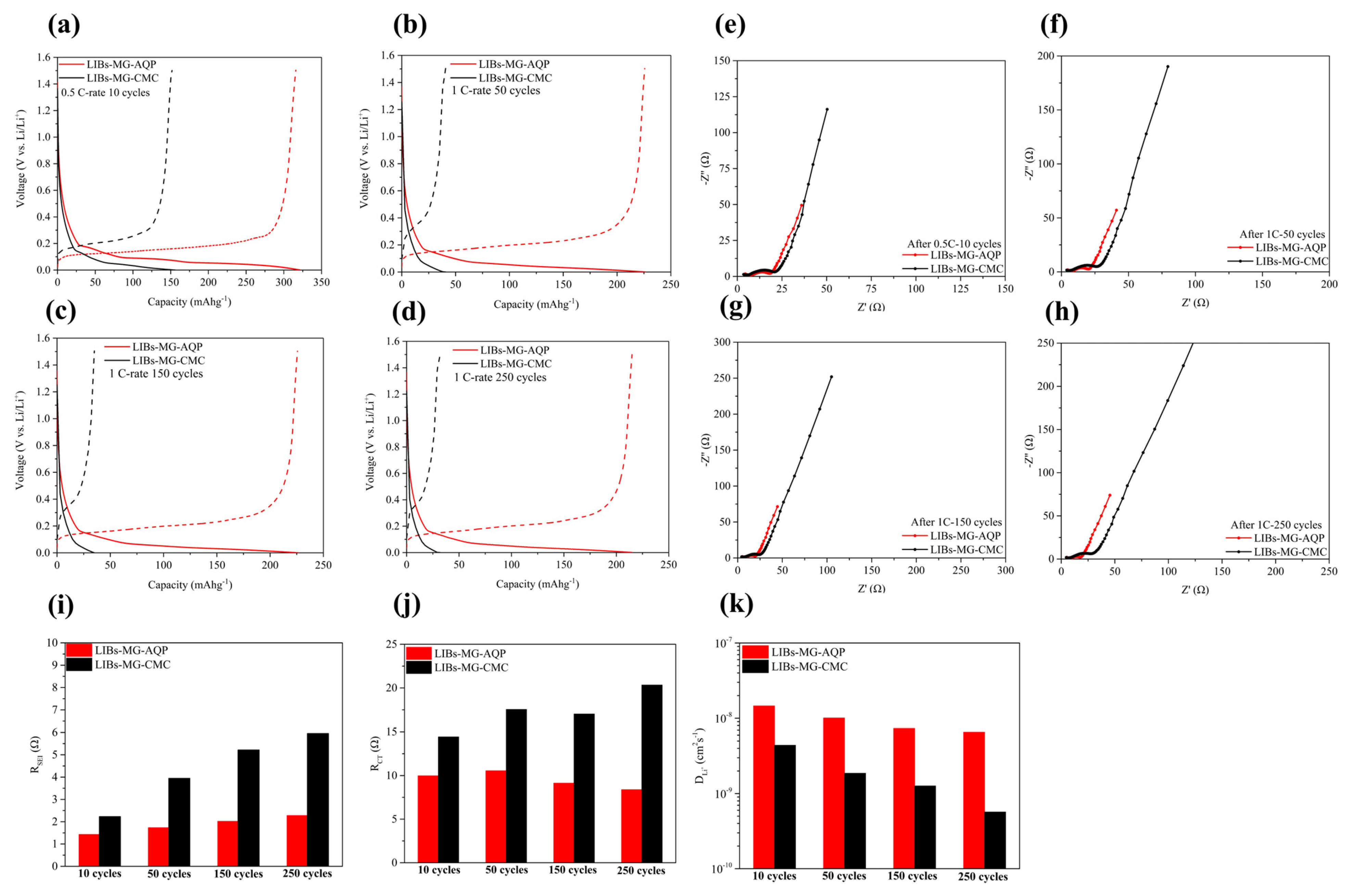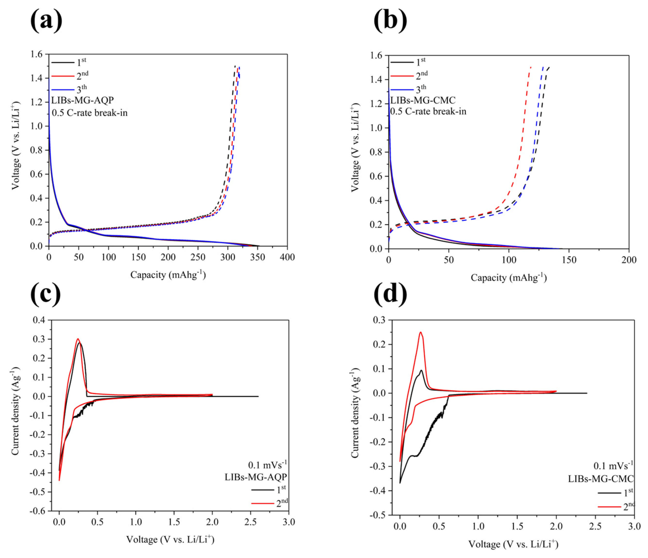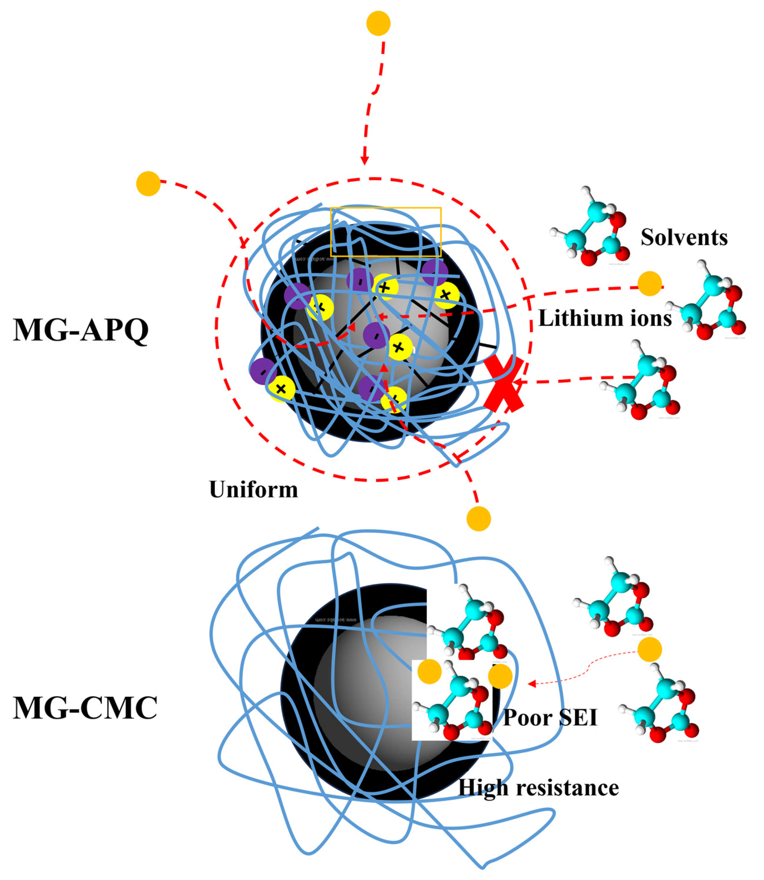 - Liao, K.Y.; Chang, C.C.; Lee, Y.L.; Wen, T.C. Applying Carboxymethyl cellulose-based aqueous binder with zwitterion molecules in graphite anode for lithium-ion batteries. Appl. Surf. Sci. 2025, 711, 164099. [Google Scholar] [CrossRef]