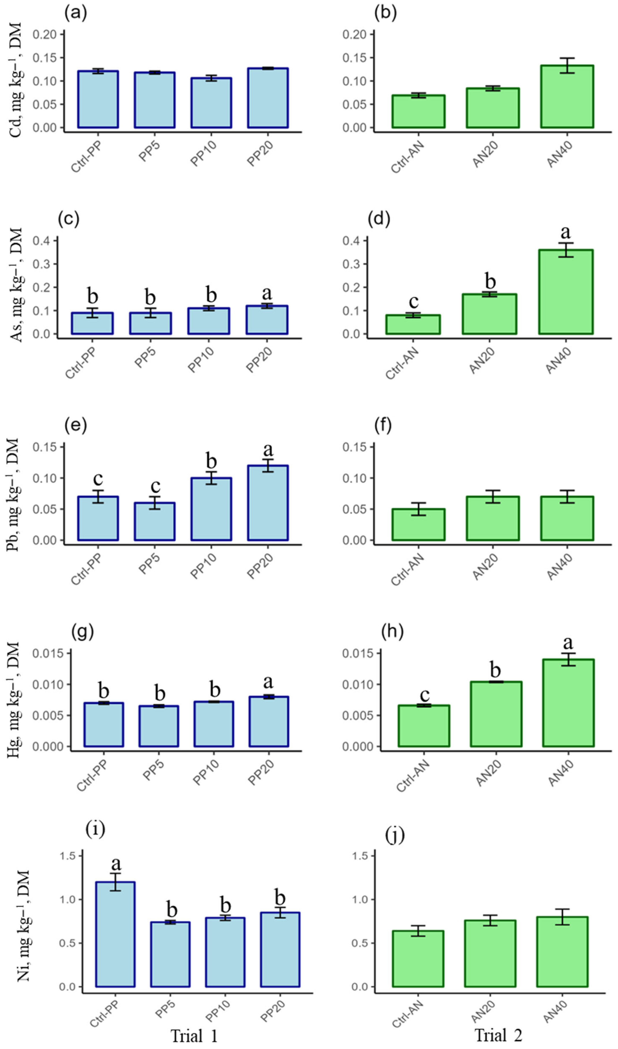 | mean ± SD (min–max), mg kg−1 DM | ||||||||