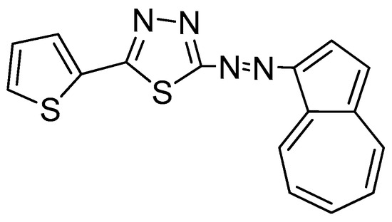 - Răzuș, A.C.; Birzan, L.; Nae, S.; Surugiu, M.N.; Cimpeanu, V. Azulene-1-azo-2′-thiazoles. Synthesis and Properties. J. Heterocycl. Chem. 2003, 40, 995–1004. [Google Scholar] [CrossRef]