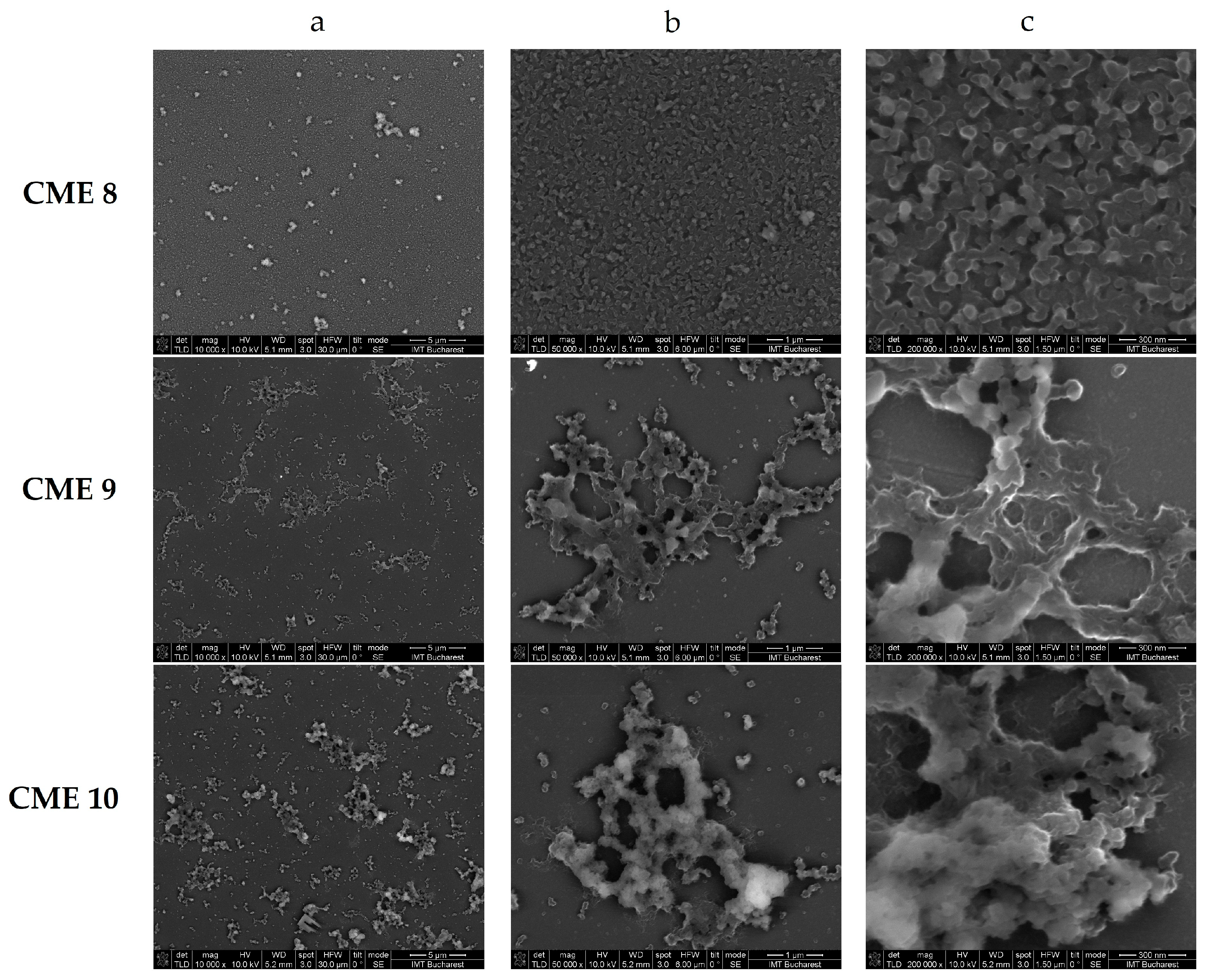 CME 9 | +1.3 V, 4 mC | Clustered, porous | Moderate | Moderate |