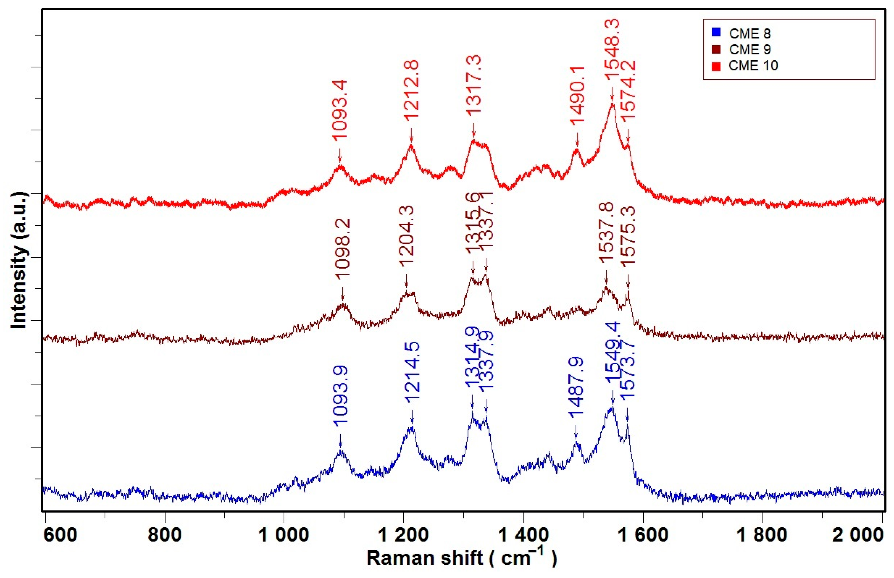 - 1314 cm−1, 1337 cm−1—C—C bonds (possible in the range of 1202–1367 cm−1);