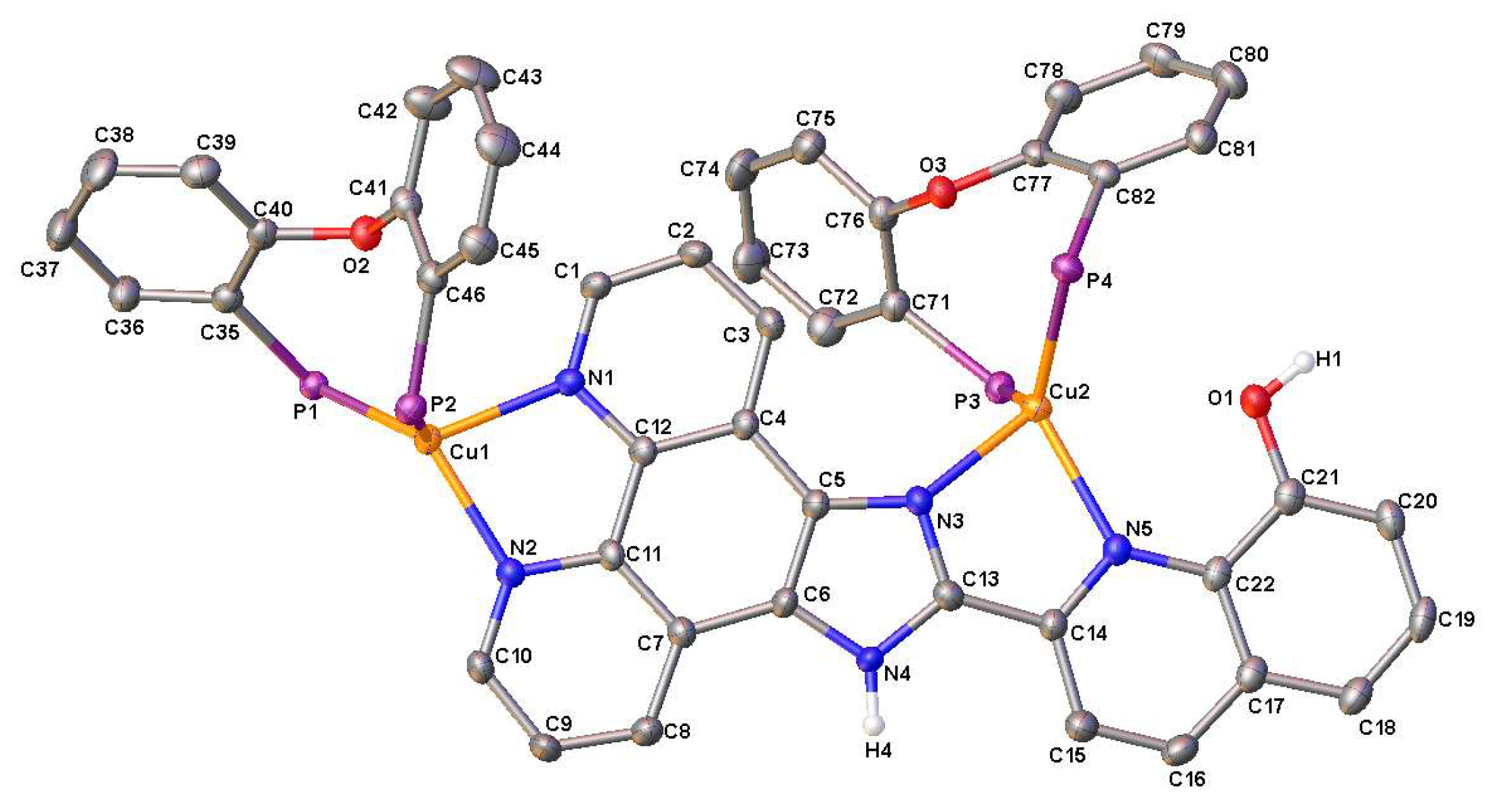 3.2.5. [Cu2(ipqH2)(xantphos)2](PF6)2 (4)
