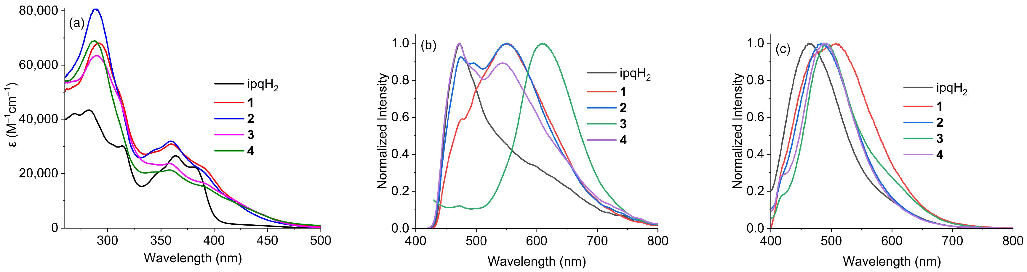 - Rozhkov, A.V.; Eliseeva, S.N.; Baykov, S.V.; Zelenkov, L.E.; Goriachiy, D.O.; Taydakov, I.V. Copper(I) Ionic Complexes Based on Imidazo[4,5-f][1,10]phenanthrolin Diimine Chelating Ligands: Crystal Structures, and Photo- and Electroluminescence Properties. New J. Chem. 2020, 44, 110–120. [Google Scholar] [CrossRef]