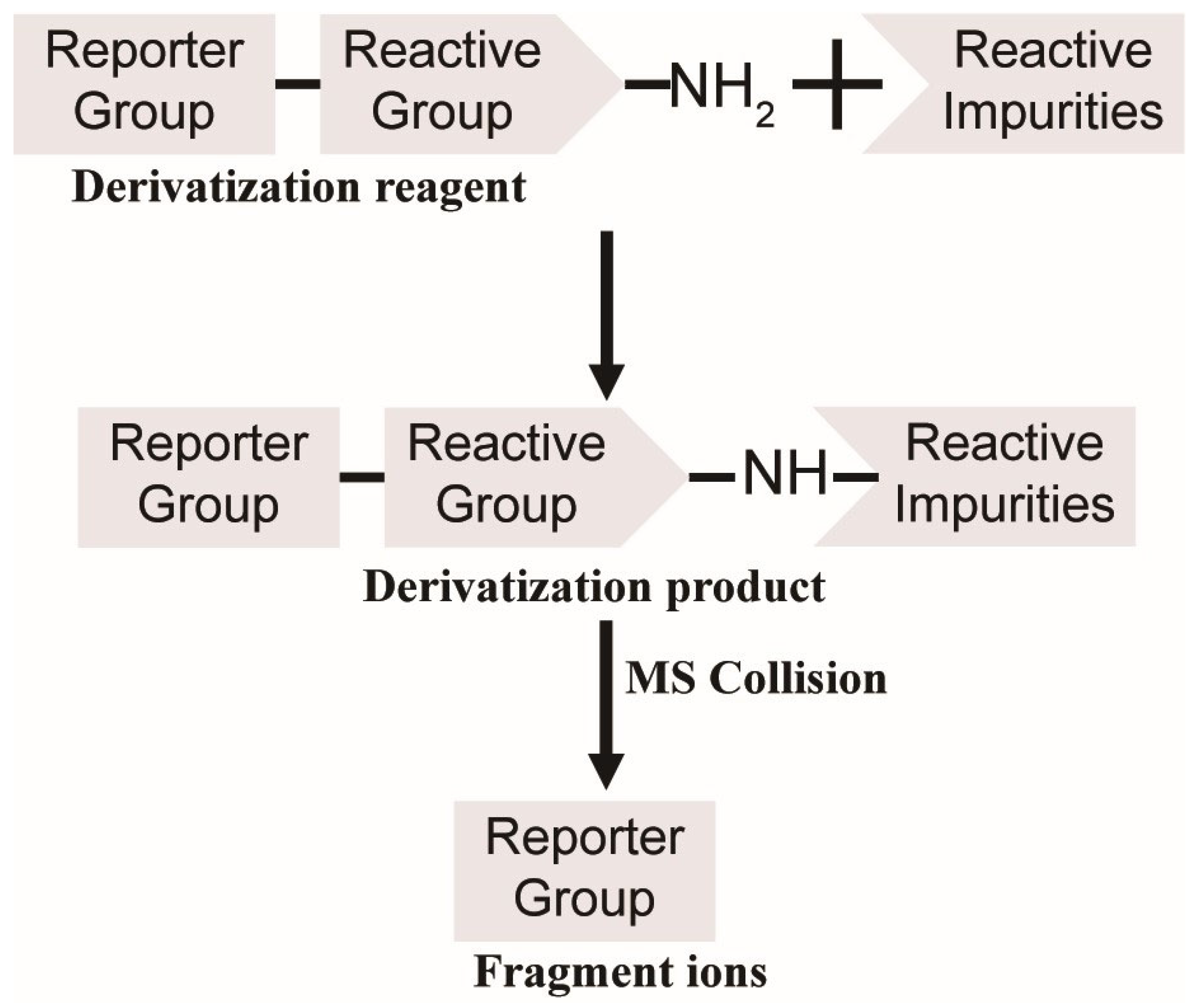 Figure 1), amine groups were strategically employed as reactive groups in the derivatization reagents. Notably, compounds with identical reporter groups in their derivatization products exhibit conserved fragmentation patterns during collision-induced dissociation. This characteristic fragmentation generates a reproducible series of reporter-specific product ions, which act as diagnostic signatures. These signature ions enable reliable identification and selective detection of derivatized compounds through their distinctive mass spectral fingerprints.