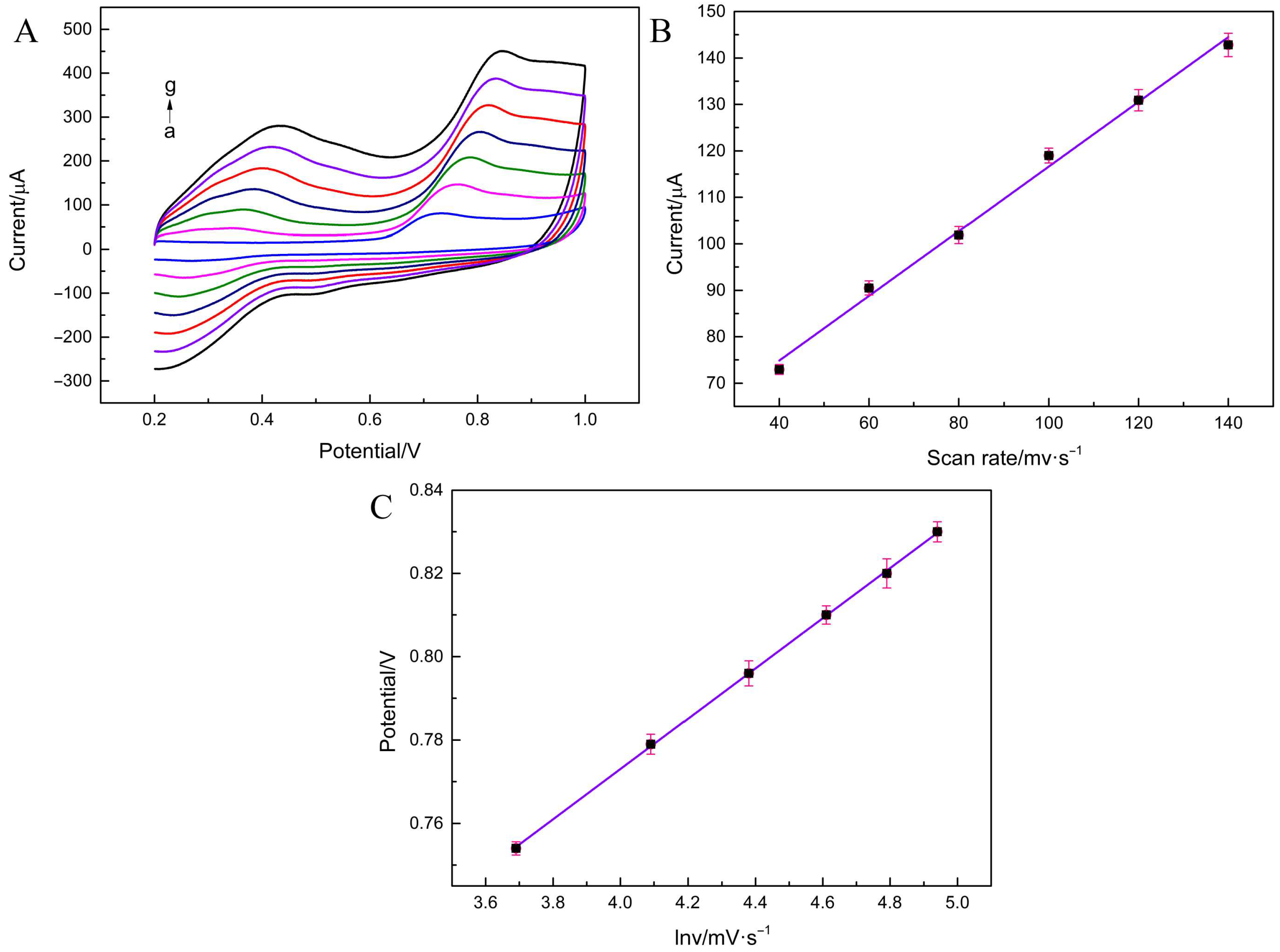 2.5. Electrochemical Behavior of Ti3C2Tx MXene/MHCs/GCE at Different Scan Rates