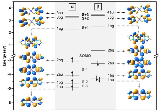 - Szilagyi, R.K.; Lim, B.S.; Glaser, T.; Holm, R.H.; Hedman, B.; Hodgson, K.O.; Solomon, E.I. Description of the Ground State Wave Functions of Ni Dithiolenes Using Sulfur K-edge X-ray Absorption Spectroscopy. J. Am. Chem. Soc. 2003, 125, 9158–9169. [Google Scholar] [CrossRef]