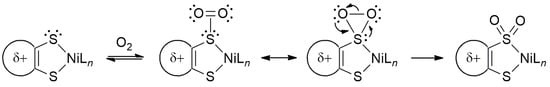 - Hronec, M.; Malik, L.; Stasko, A. Reaction of bis-(1,2-diphenylethylene-1,2-dithiolato)nickel with cumene hydroperoxide. J. Mol. Catal. 1985, 30, 251–258. [Google Scholar] [CrossRef]