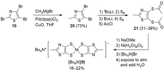 3.4.4. Tetrabutylammonium Bis(2-methyl-4,5-thiazoledithiolato)nickelate(1−) ([Bu4N][9])
