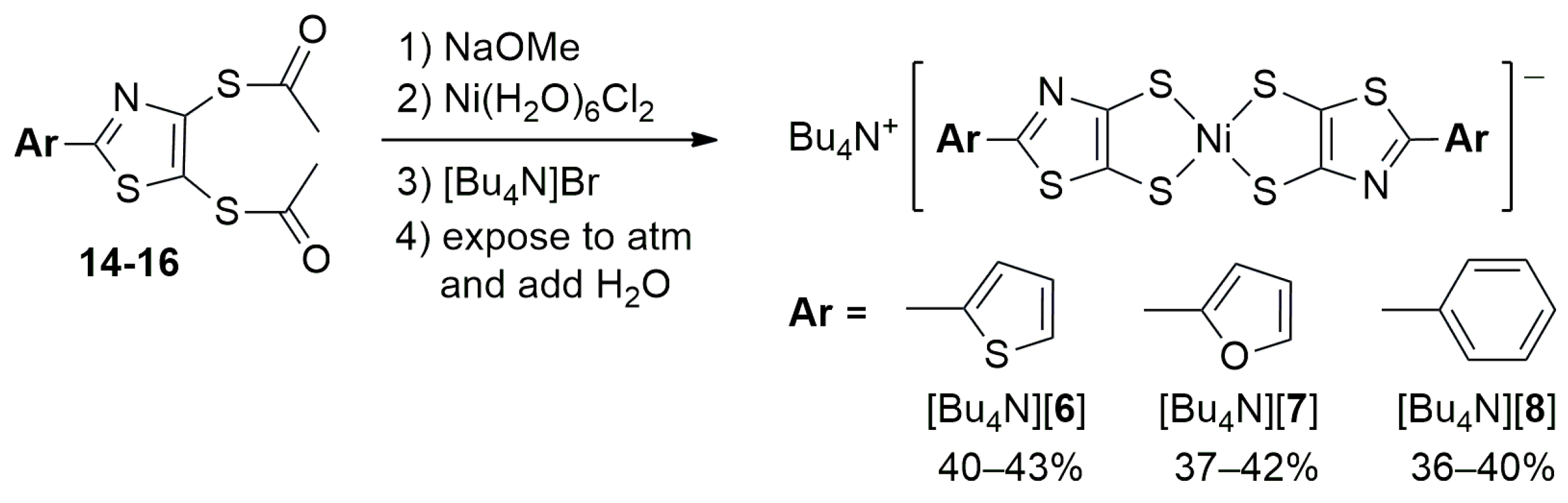 3.4. General Procedure for Synthesis of Nickel Thiazoledithiolenes