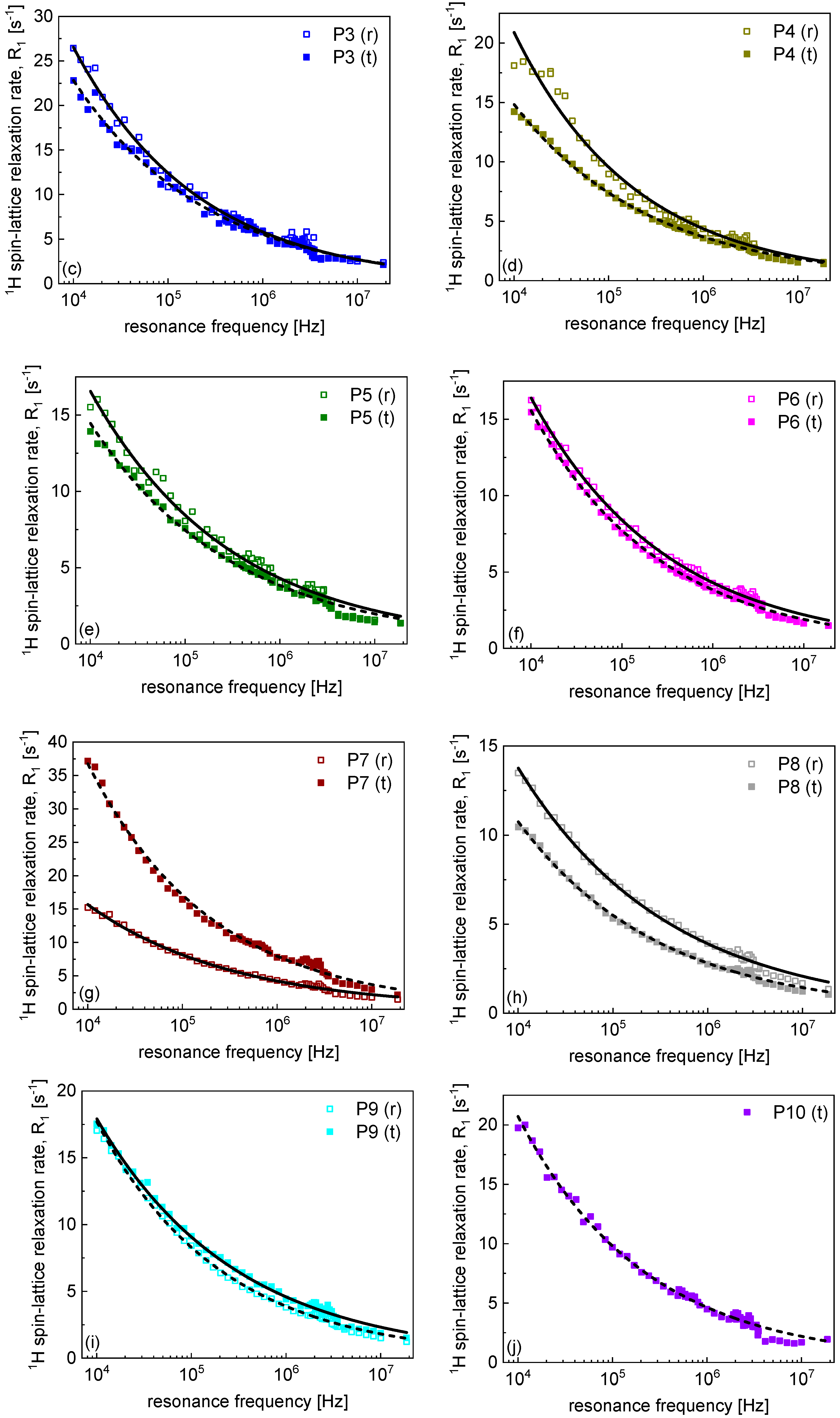 - Calucci, L.; Forte, C. Proton longitudinal relaxation coupling in dynamically heterogeneous soft systems. Prog. Nucl. Magn. Reson. Spectrosc. 2009, 55, 296–323. [Google Scholar] [CrossRef]