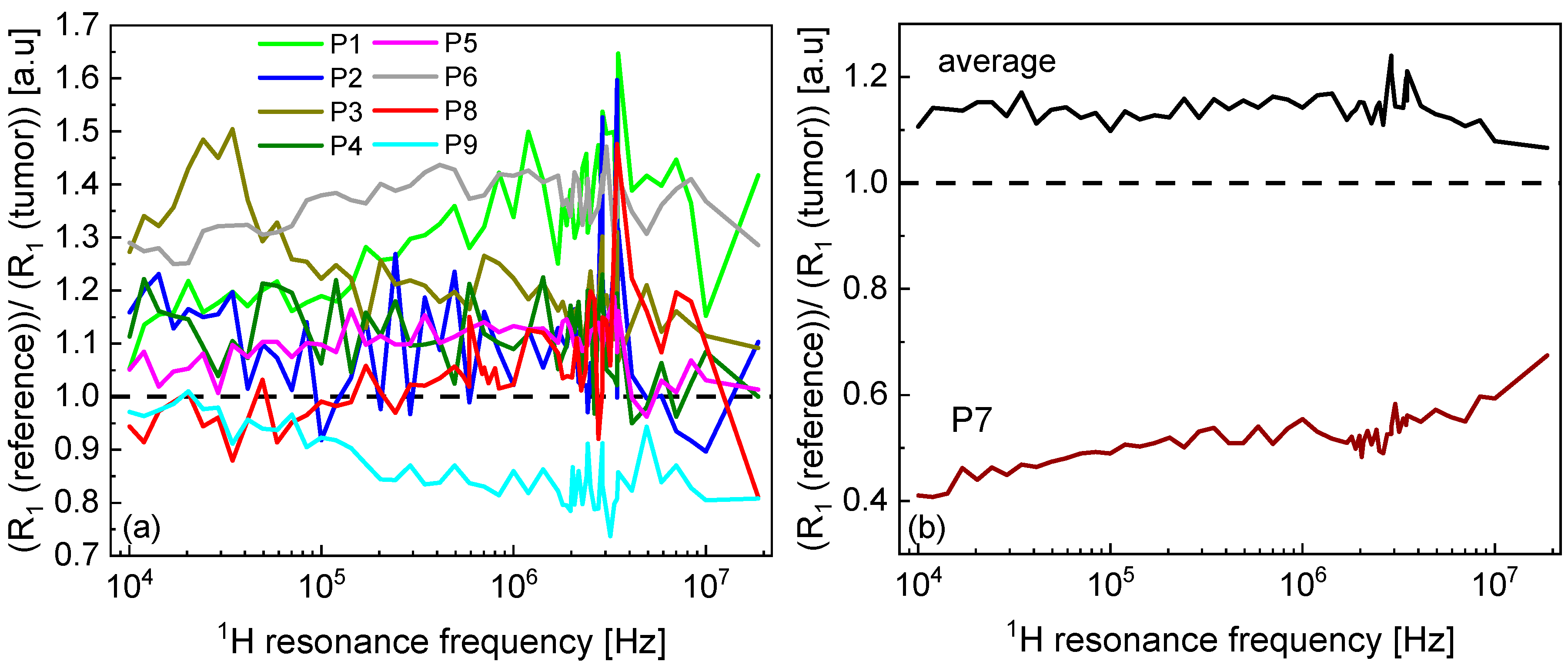 - Mallikourti, V.; Ross, P.J.; Maier, O.; Hana, K.; Husain, H.; Davies, G.R.; Lurie, D.J.; Lip, G.; Lahrech, H.; Masannat, Y.; et al. Field cycling imaging to characterise breast cancer at low and ultra-low magnetic fields below 0.2 T. Commun. Med. 2024, 4, 221. [Google Scholar] [CrossRef] [PubMed]