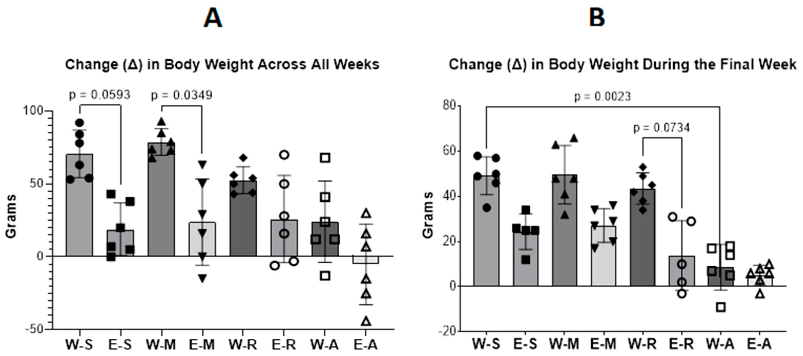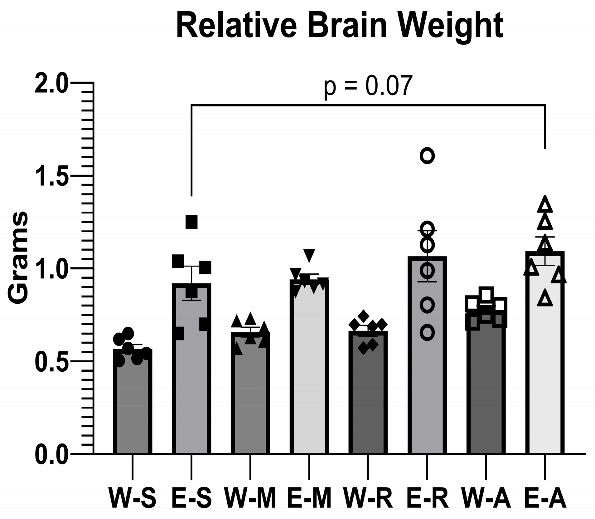 3.5. Body Weight, Brain Weight and Relative Brain Weight