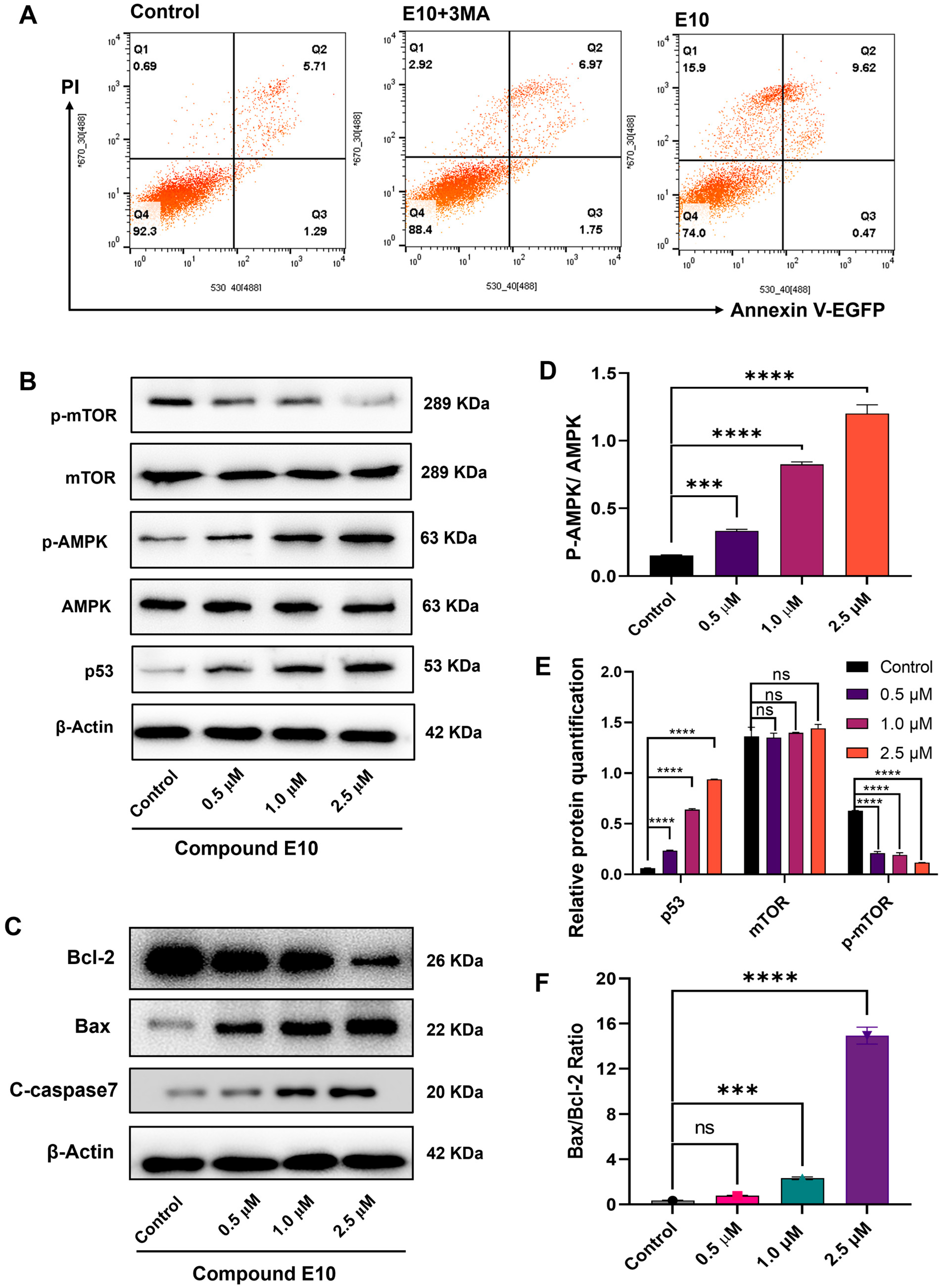 2.7. E10 Induced Cell Death via the AMPK-mTOR Pathway