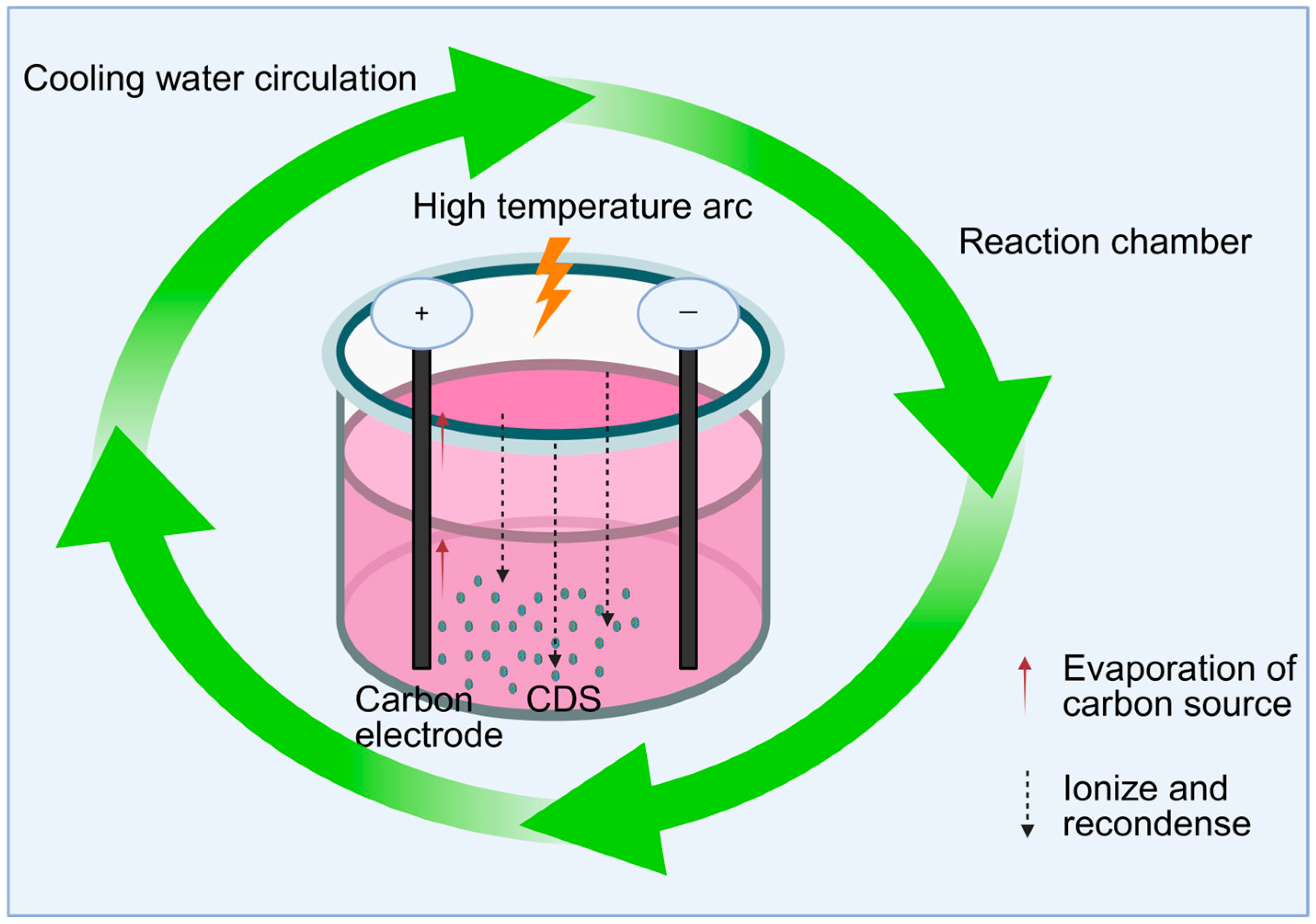 Laser ablation | The laser irradiates the carbon target to vaporize and condense it. | Small and well-dispersed, but associated with high equipment cost |