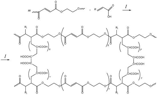 - Burkeev, M.; Zhunissova, M.; Tazhbayev, Y.; Fomin, V.; Sarsenbekova, A.; Burkeyeva, G.; Kazhmuratova, A.; Zhumagalieva, T.; Zhakupbekova, E.; Khamitova, T. Influence of RAFT Agent on the Mechanism of Copolymerization of Polypropylene Glycol Maleinate with Acrylic Acid. Polymers 2022, 14, 1884. [Google Scholar] [CrossRef]