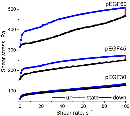 - Bhattacharyya, T.; Jacob, A.; Petekidis, G.; Joshi, Y. On The Nature of Flow Curve and Categorization of Thixotropic Yield Stress Materials. J. Rheol. 2023, 67, 461–477. [Google Scholar] [CrossRef]
