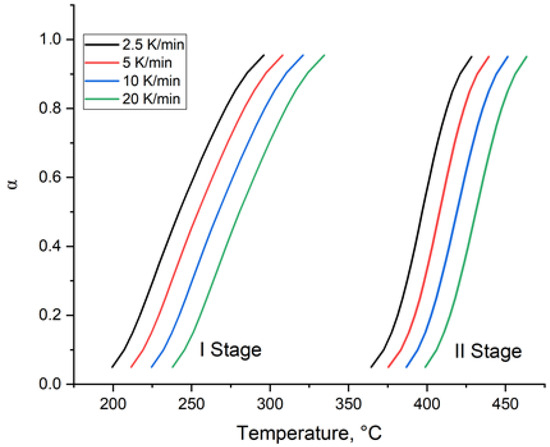 | Sample | Temperature, °C | max | ·10−6, s−1 | ·10−3, s−1 | R2 | , kJ/mol | |||||
