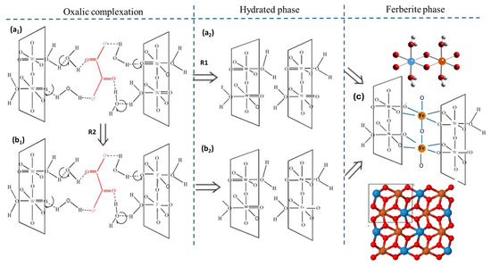 Scheme 1 illustrates this dual-pathway mechanism, consisting of two parallel reaction routes. The first step corresponds to the tungsten oxalate complexation (a1) and (a2), as reported by Li et al. [40]. We then suggested the following steps based on our observations.