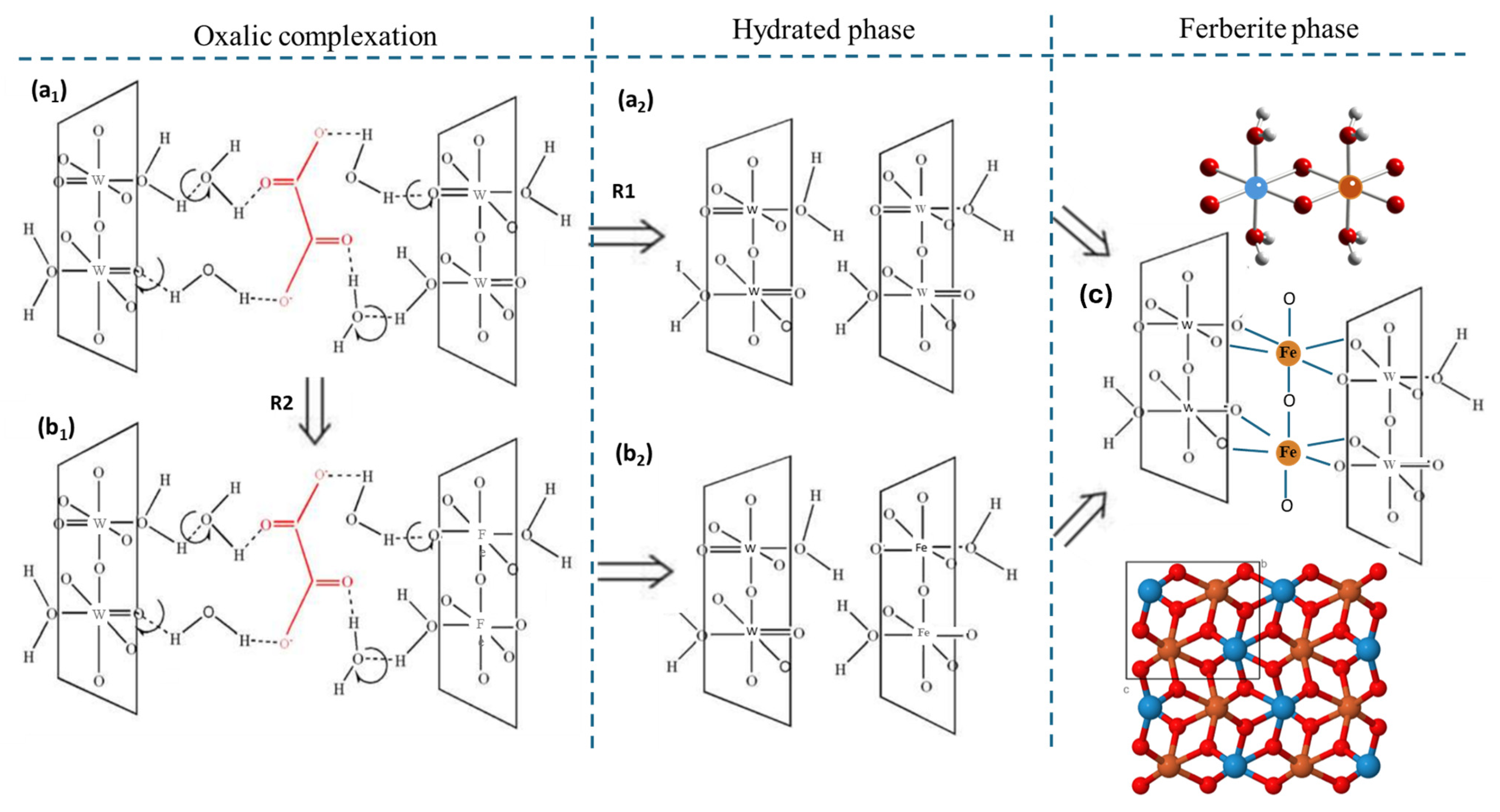- Li, L.; Zhao, J.; Wang, Y.; Li, Y.; Ma, D.; Zhao, Y.; Hou, S.; Hao, X. Oxalic Acid Mediated Synthesis of WO3·H2O Nanoplates and Self-Assembled Nanoflowers under Mild Conditions. J. Solid State Chem. 2011, 184, 1661–1665. [Google Scholar] [CrossRef]