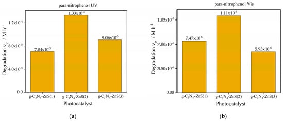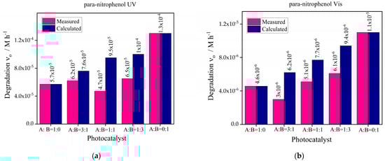 Initial rate of degradation of para-nitrophenol under (a) UV and (b) visible light.