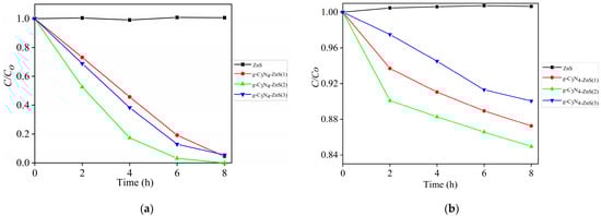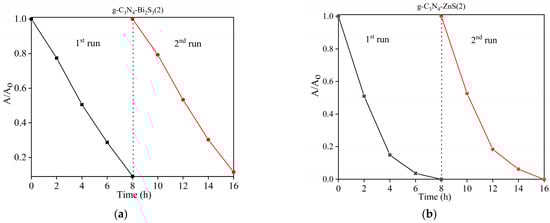 Reusability of catalysts (a) g-C3N4-Bi2S3(2) and (b) g-C3N4-ZnS(2).