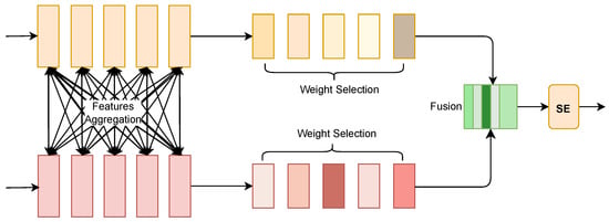The softmax operation introduces a competition mechanism among the feature weights, helping to select the most appropriate features from both local and global aggregated features. Finally, the Squeeze-and-Excitation (SE) module is used to re-calibrate the output features, further enhancing the discriminative power of the selected features.