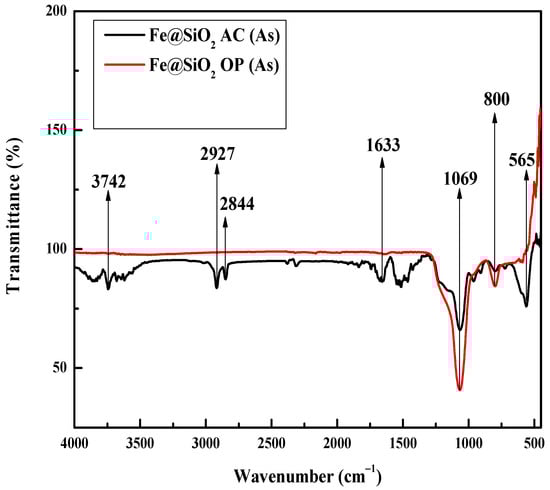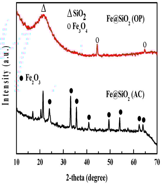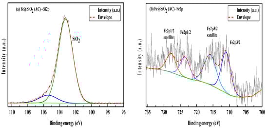 3.2. Fe@SiO2 Core–Shell Preparation Using Autoclave (AC) Procedure