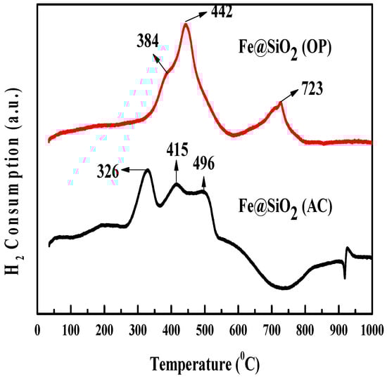 - Wielers, A.F.H.; Kock, A.J.H.M.; Hop, C.E.C.A.; Geus, J.W.; van Der Kraan, A.M. The Reduction Behavior of Silica-Supported and Alumina-Supported Iron Catalysts: A Mössbauer and Infrared Spectroscopic Study. J. Catal. 1989, 117, 1–18. [Google Scholar] [CrossRef]