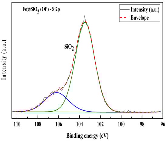 3.3. Fe@SiO2 Core–Shell Preparation with One-Pot (OP) Synthesis Technique
