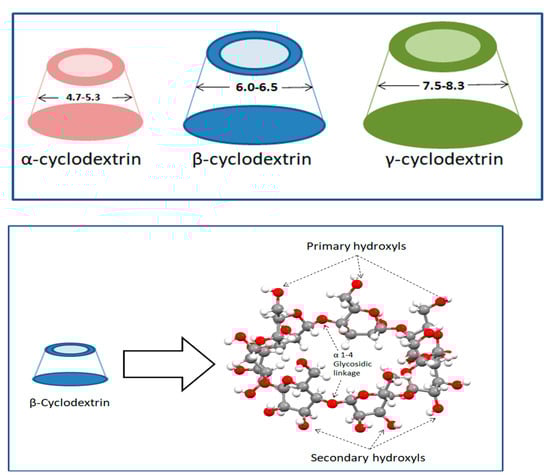 - Poulson, B.G.; Alsulami, Q.A.; Sharfalddin, A.; El Agammy, E.F.; Mouffouk, F.; Emwas, A.-H.; Jaremko, L.; Jaremko, M. Cyclodextrins: Structural, Chemical, and Physical Properties, and Applications. Polysaccharides 2021, 3, 1–31. [Google Scholar] [CrossRef]