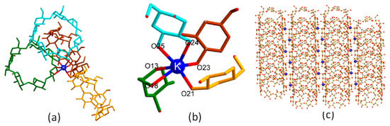 - Lu, H.; Yang, X.; Li, S.; Zhang, Y.; Sha, J.; Li, C.; Sun, J. Study on a new cyclodextrin based metal–organic framework with chiral helices. Inorg. Chem. Commun. 2015, 61, 48–52. [Google Scholar] [CrossRef]