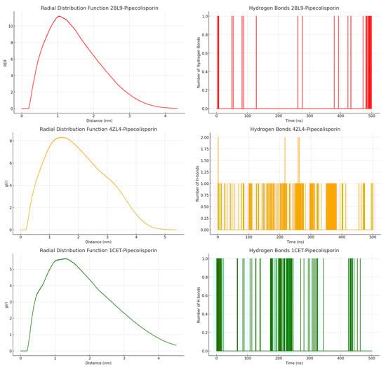 Radial Distribution Function (RDF) and hydrogen bonds analysis of the pipecolisporin complex.
