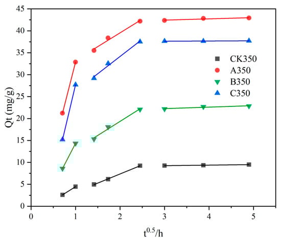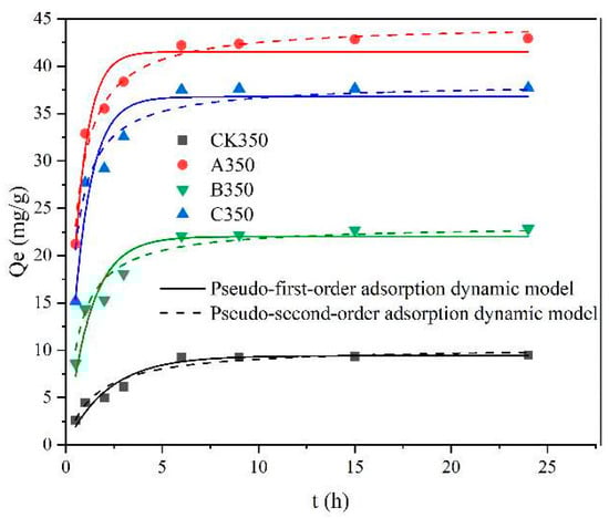| Adsorption Kinetics | Parameter | CK350 | A350 | B350 | C350 |