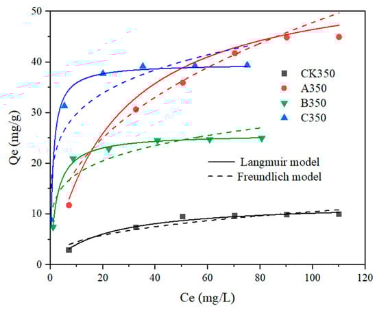 | Adsorption Isotherms | Parameter | CK350 | A350 | B350 | C350 |